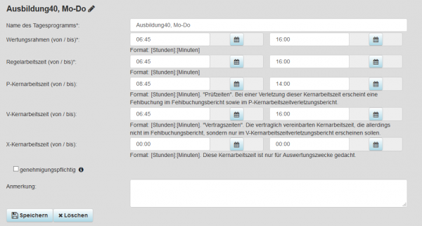 Eingabemaske Mitarbeiter-Tagesprogramm
